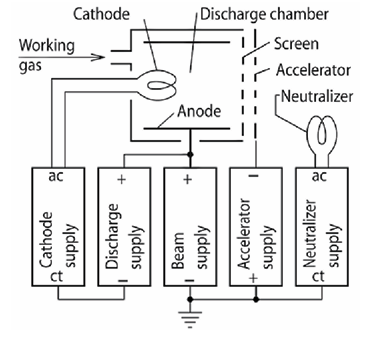 图1:直流有栅格离子源示意图。其核心是通过栅极系统提取并加速离子。